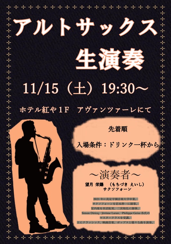 ●サクソフォーン演奏:望月 栄賜(もちづき えいし)