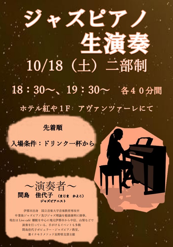 ●ジャズピアノ演奏:間島 佳代子(まじま かよこ)