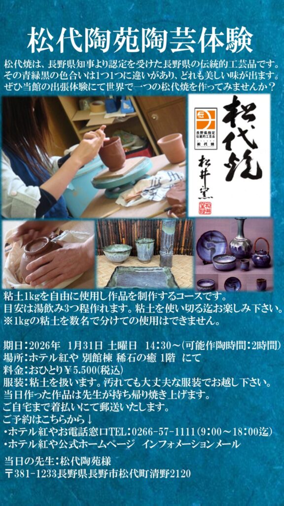 伝統ある松代焼の奥深さを、ぜひこの機会にご体験ください。