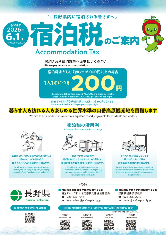 【重要】2026年6月1日より「長野県宿泊税」が導入されます